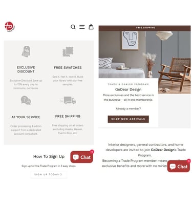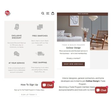 Redesigned a window treatment brand's ecommerce experience to serve both retail and trade buyers. Built SEO-friendly product filtering, clear CTAs, and a B2B membership signup flow—turning organic traffic into qualified distributor inquiries.